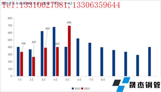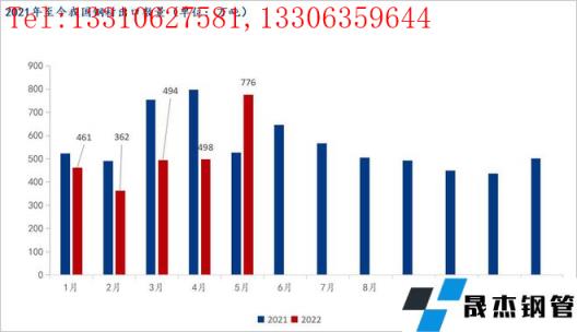 近期我國(guó)大部分區(qū)域已經(jīng)開始逐步解除疫情封控,對(duì)于前期因疫情導(dǎo)致的運(yùn)輸受阻基本暢通,因此前期因運(yùn)輸導(dǎo)致的延遲發(fā)貨在5月份已經(jīng)有所體現(xiàn),預(yù)計(jì)6月份仍有部分推遲訂單陸續(xù)發(fā)出,因此6月份我國(guó)厚壁無縫鋼管出口或?qū)⒗^續(xù)呈現(xiàn)增勢(shì),由于訂單縮減,7月份起我國(guó)厚壁無縫鋼管出口量或?qū)㈤_始逐漸低迷,回歸正常至500萬噸左右的出口量。