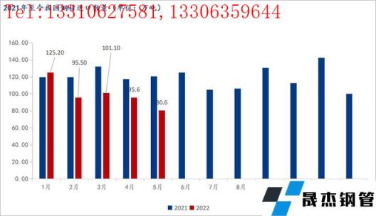 5月中國(guó)進(jìn)口厚壁無縫鋼管80.6萬噸,較上月減少15萬噸,同比下降33.4%;1-5月累計(jì)進(jìn)口厚壁無縫鋼管498.0萬噸,同比下降18.3%。