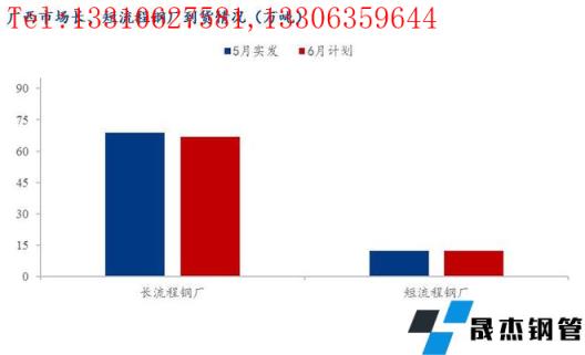 1、6月份廣西地區(qū)建筑材省內(nèi)長流程無縫厚壁鋼管廠家計(jì)劃供應(yīng)量共計(jì)66.8萬噸,環(huán)比下降2.12萬噸,降幅為3.08%;短流程無縫厚壁鋼管廠家到貨量為12.4萬噸,環(huán)比增加0.2萬噸,增幅為1.64%。
