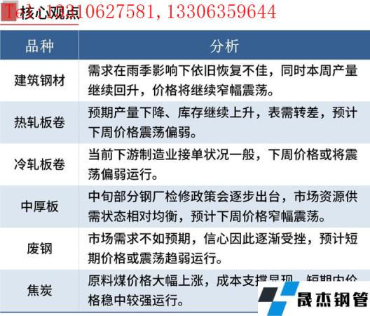 建筑厚壁無(wú)縫鋼管:6月10日,全國(guó)31個(gè)主要城市20mm三級(jí)抗震螺紋鋼均價(jià)4821元/噸,較上個(gè)交易日下跌17元/噸。短期來(lái)看,目前市場(chǎng)需求在雨季影響下依舊恢復(fù)不佳,同時(shí)本周產(chǎn)量繼續(xù)回升,高爐產(chǎn)能維持,供需仍然呈現(xiàn)雙弱格局。因此在下游需求難以回暖的狀態(tài)下,預(yù)計(jì)下周?chē)?guó)內(nèi)建筑厚壁無(wú)縫鋼管價(jià)格或?qū)⒗^續(xù)窄幅震蕩為主。