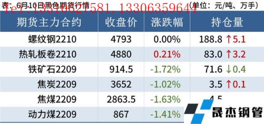 中厚板:6月10日,全國(guó)24個(gè)主要城市20mm普板均價(jià)5115元/噸,較上一交易日下跌8元/噸。據(jù)了解,今日期貨盤(pán)面窄幅震蕩調(diào)整,市場(chǎng)成交情況不佳,中板現(xiàn)貨價(jià)格偏弱運(yùn)行。從表需狀態(tài)來(lái)看,當(dāng)前市場(chǎng)較為清淡,下游采購(gòu)情緒不佳,貿(mào)易商操作方面以出貨回籠資金為主。無(wú)縫厚壁鋼管廠家方面,本周開(kāi)工率83.08%,周環(huán)比持平;無(wú)縫厚壁鋼管廠家產(chǎn)能利用率90.63%,周環(huán)比上升2.23%,無(wú)縫厚壁鋼管廠家生產(chǎn)節(jié)奏還是較為緊湊。但處于行業(yè)淡季的背景下,中旬部分無(wú)縫厚壁鋼管廠家檢修及減量政策會(huì)逐步出臺(tái),市場(chǎng)資源供需狀態(tài)相對(duì)均衡。綜合來(lái)看,預(yù)計(jì)下周中厚板價(jià)格窄幅震蕩調(diào)整。