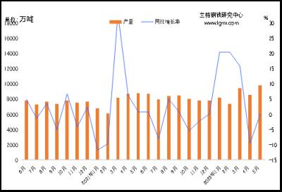 據國家統計局統計,2022年1-5月份全國鐵礦石原礦總產量為42388.3萬噸,同比增長0.2%,5月份在疫情逐步得到控制后,國產鐵礦石產量開始出現穩步增長。