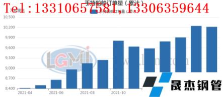5月份國內手持船舶訂單量累計為10220萬載重噸,環比4月份減少約27萬載重噸。同比21年同期增加約1801萬載重噸。