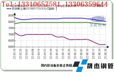 6月份,國內(nèi)涂鍍市場價格大幅下跌。鋼市傳統(tǒng)淡季特征明顯,疫情仍然制約下游需求,加之政策面提振作用減弱,中旬市場價格暴跌超400元,商家持續(xù)看空。隨著盤面超跌反彈,下旬現(xiàn)貨市場價格震蕩盤整,釋放部分下游需求。