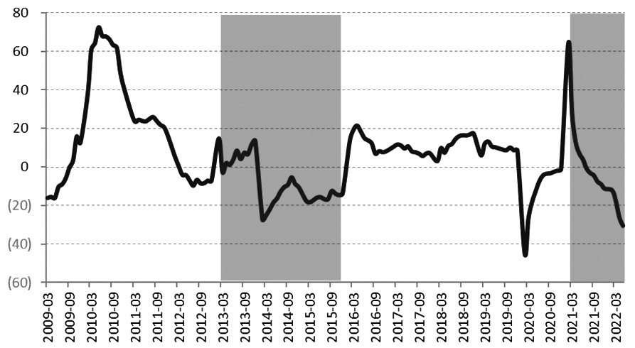 本輪地產調整周期始于2021年第二季度。在地產相關政策的驅動下,從2021年第四季度開始,地產新開工面積再次進入負增長狀態,疊加疫情影響,降幅呈現加速下滑態勢。受此影響,螺紋鋼需求降幅可見一斑。根據上述分析,我們可以清晰看到,當前螺紋鋼的需求表現和2013年有很大相似之處。