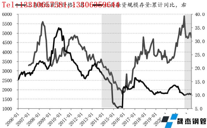 圖為社融增速與螺紋鋼價格