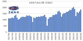 重要數(shù)據(jù):海關(guān)總署統(tǒng)計數(shù)據(jù)顯示,2022年上半年,我國機(jī)電產(chǎn)品出口金額9836.8億美元,同比增長9.6%。其中6月份,我國機(jī)電產(chǎn)品出口金額1831.7億美元。