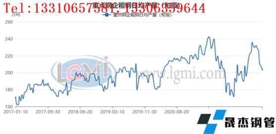 進(jìn)入下半年,國(guó)內(nèi)厚壁無(wú)縫鋼管生產(chǎn)企業(yè)迫于虧損壓力,開(kāi)始了大幅減產(chǎn)的進(jìn)程。據(jù)中國(guó)厚壁無(wú)縫鋼管工業(yè)協(xié)會(huì)統(tǒng)計(jì)數(shù)據(jù)顯示,2022年7月上中旬重點(diǎn)鋼企生鐵日均產(chǎn)量191.2萬(wàn)噸,比上月下降4.58%,同比上升1.44%;粗鋼日均產(chǎn)量205.79萬(wàn)噸,比上月下降6.43%,同比下降4.00%(詳見(jiàn)圖2);厚壁鋼管日均產(chǎn)量202.04萬(wàn)噸,比上月下降6.94%,同比下降2.33%。