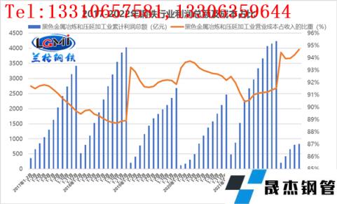 圖4 2017-2022年厚壁無(wú)縫鋼管行業(yè)利潤(rùn)總額及成本占比