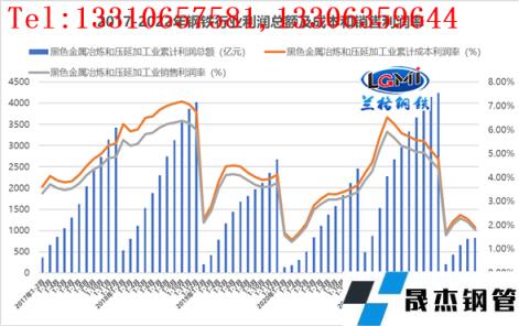 圖5 2017-2022年厚壁無(wú)縫鋼管行業(yè)利潤(rùn)總額及成本和銷(xiāo)售利潤(rùn)率
