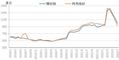 美國長材價格漲跌互現。7月底,美國中西部無縫鋼管廠家螺紋鋼價格下跌140美元至1150美元,進口螺紋鋼價格下跌35美元至1040美元;中西部無縫鋼管廠家小型材價格下跌15美元至1460美元,進口小型材價格下跌50美元至1310美元。美聯儲持續收緊貨幣政策,高利率抑制買家需求,美國房地產市場快速降溫,將對厚壁鋼管需求形成負面影響,美國長材市場價格處于高位,仍有回調空間,8月份北美市場長材價格或延續震蕩調整的走勢。